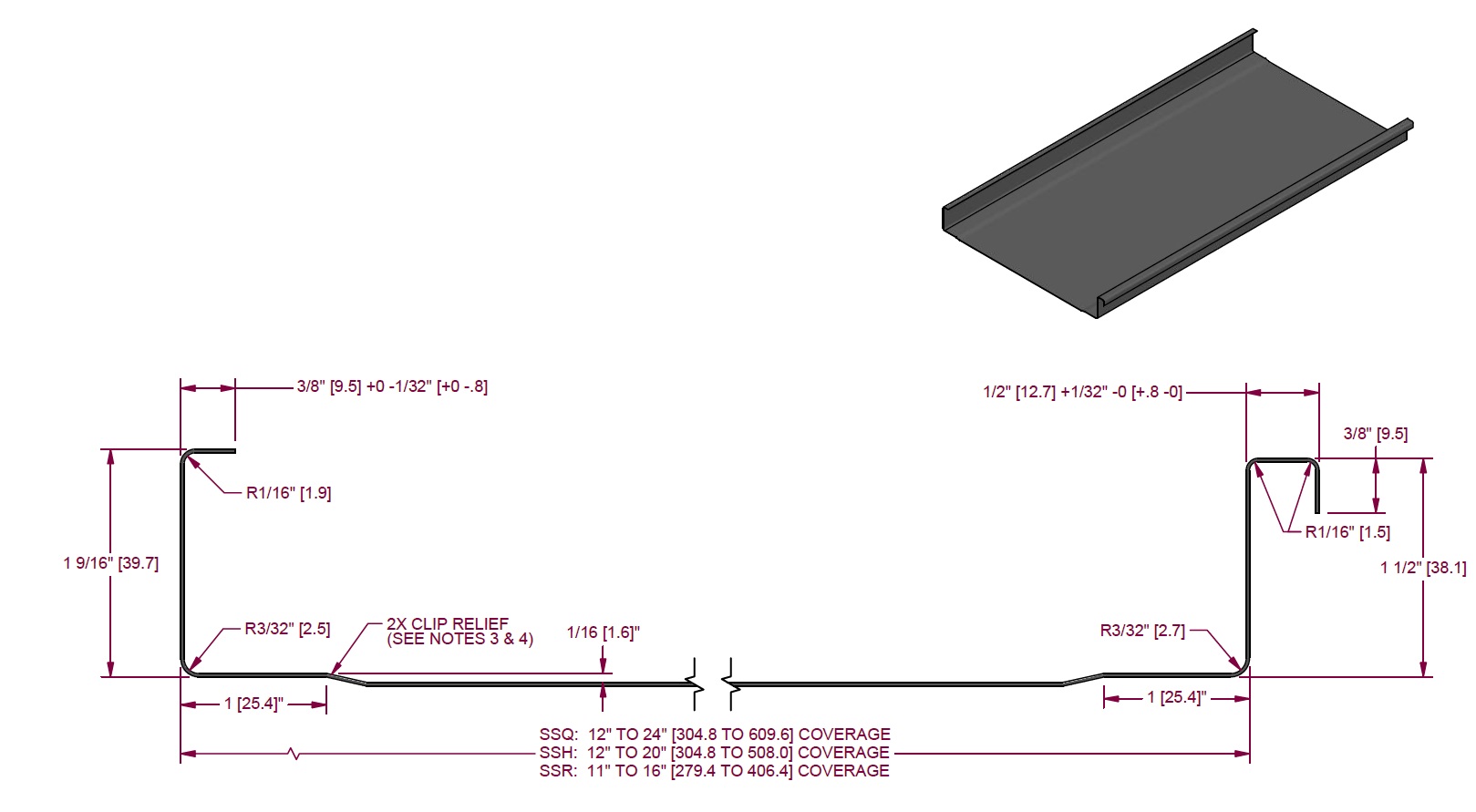 Nelson Roofing & Sheet Metal Ltd. SS 150 38.1 (1-1/2) ML 304.8 (12) 508 (20) 46 (150)