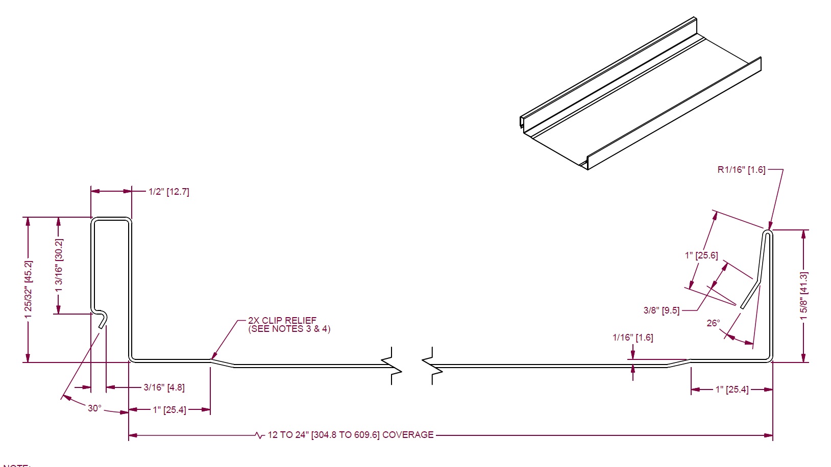 Laing Roofing Ltd. SS150 (Laing) SS150 (Profile).jpg 38.1 (1-1/2) ML 304.8 (12) 609.6 (24) Optional 46 (150)