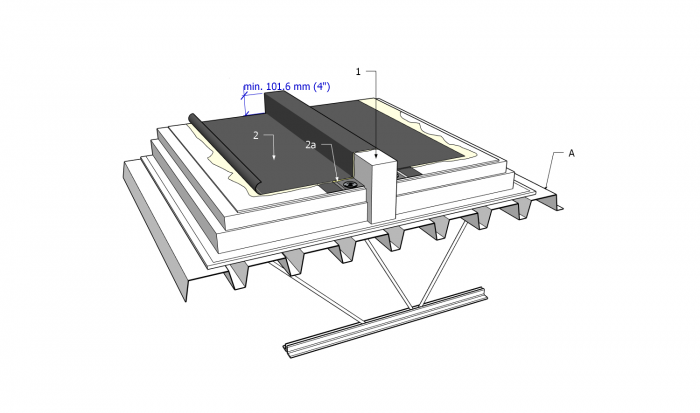 - Two models are illustrated here. A control joint may be as low as 101.6 mm (4”), shown in Drawing B, provided it is not capped with a linear metal flashing. If a metal cap flashing is specified, the minimum height of the control joint must be 127 mm (5”), shown in Drawing A, and screw fasteners securing the cap flashing must be kept at least 88.9 mm (3-1/2”) above the finished roof system surface.